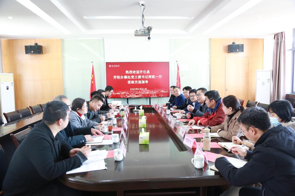 2月21日,开化县芹阳办事处党工委书记郑凯一行8人来bat365对接院地合作相关事宜。学院院长李彦及学院领导班子、各学科专业负责人及科技特派员代表参加座谈,社会合作处副处长吴一鸣出席座谈会。