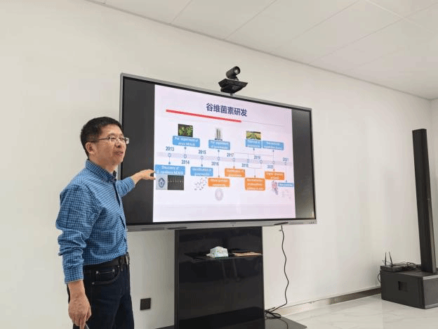 向文胜教授团队历时十余年时间,从中药重楼的内生菌中找到一株链霉菌NEAU6,于其代谢物中发现了谷维菌素,并进一步研究了其促进植物生长、提高植物抗病能力的功能及作用机理。2021年12月30日,向文胜教授团队以东北农业大学为主体,获批谷维菌素全球首个原药登记以及首个农药制剂登记。