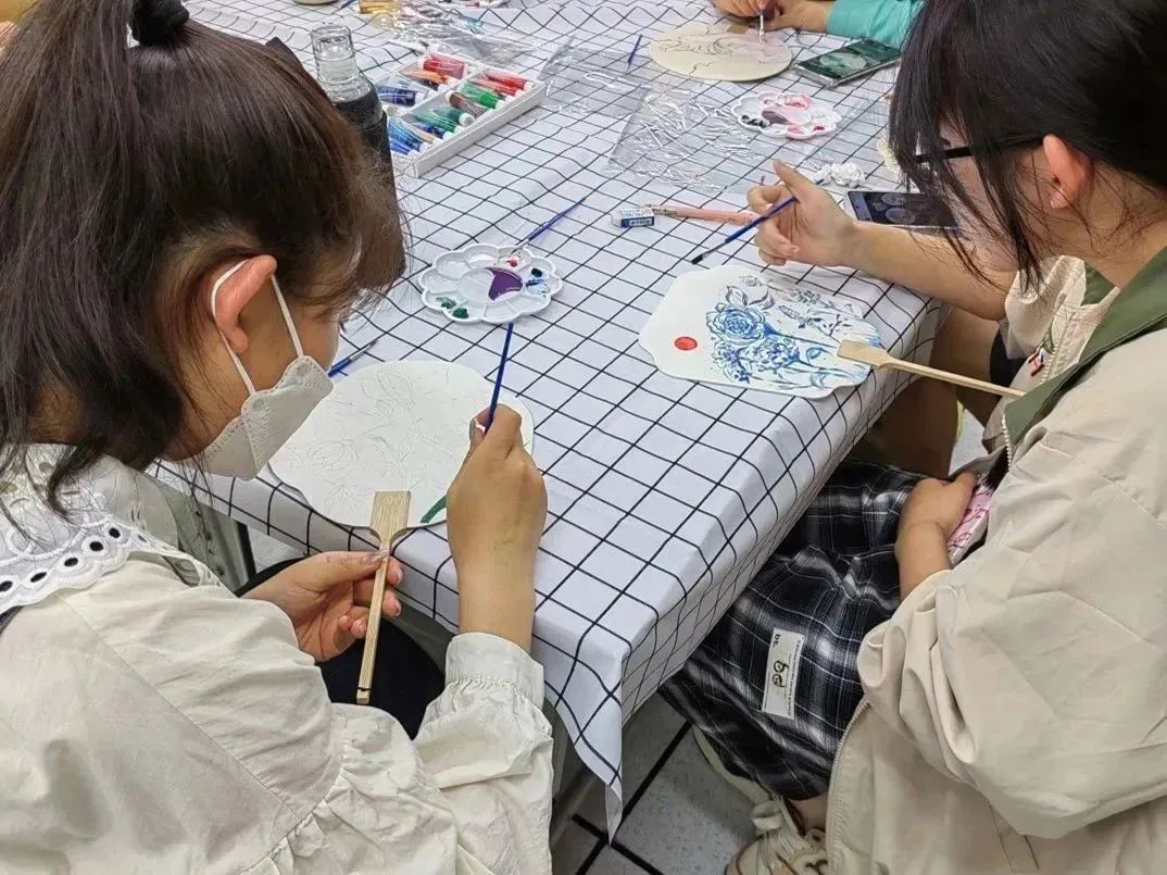 此次心理健康活动由“溢彩阅农林”团扇涂鸦和“心灵花园”多肉种植两部分组成。在团扇涂鸦环节,同学们挑选出自己喜欢的团扇,落座提笔,绘画涂鸦,每一把团扇在妙笔下各具风情,丰富明亮的色彩与淡雅古朴的宣纸交织,别具一番韵味。在多肉种植环节,同学们挑选了样式各异的多肉和色彩缤纷的花盆进行播种,在种植的过程中感受着生命的力量,体会绿色的治愈,逐渐忘却烦恼忧愁。