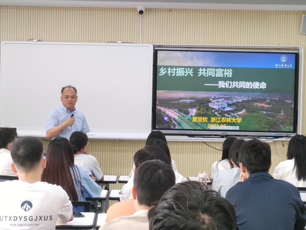 近日,我校森林培育学科党支部书记、全国优秀共产党员黄坚钦受林学(林业技术)191班全体同学的邀请,在毕业前给同学们上了一堂就业始业课。