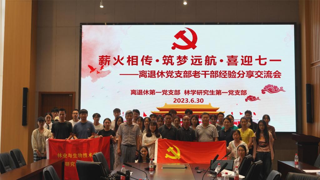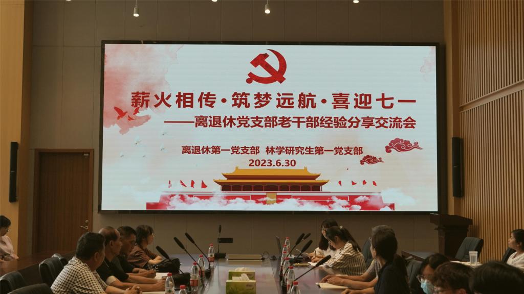 为进一步贯彻落实习近平总书记关于老干部工作的一系列重要指示批示精神,推动离退休干部工作再上新水平,加强离退休党员与研究生党员之间的交流与互动,共同推动党建工作发展,增进研究生党员对党的认识和理解,提高党性修养,同时,为喜迎七一,为党庆生,6月30日下午,学校退休第一党支部与林学研究生第一党支部共同举办“薪火相传·筑梦远航·喜迎七一”离退休党支部老干部经验分享交流会。学院党委书记郑炳松、党委副书记冯晓燕、还有退休老干部董林根、严逸伦、王学利三位老师以及林生院研究生各党支部党员代表和积极分子参加此次活动。会议由林学研究生第一党支部书记吴翠萍主持。