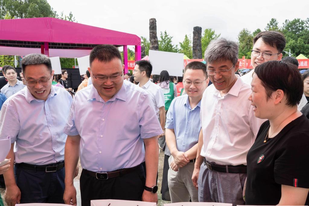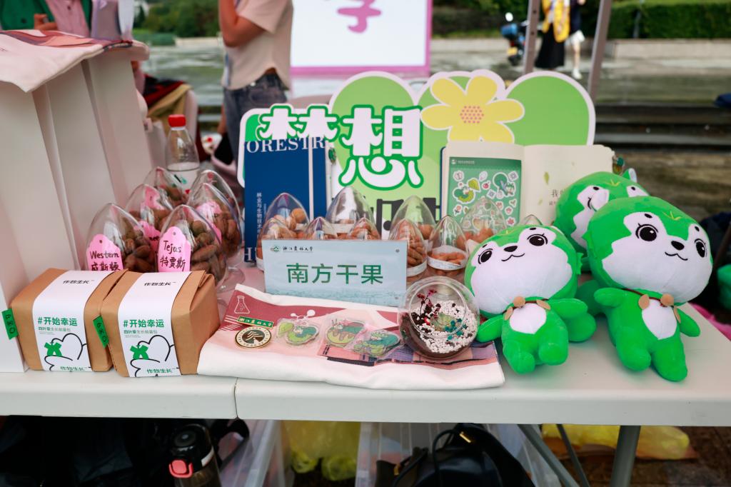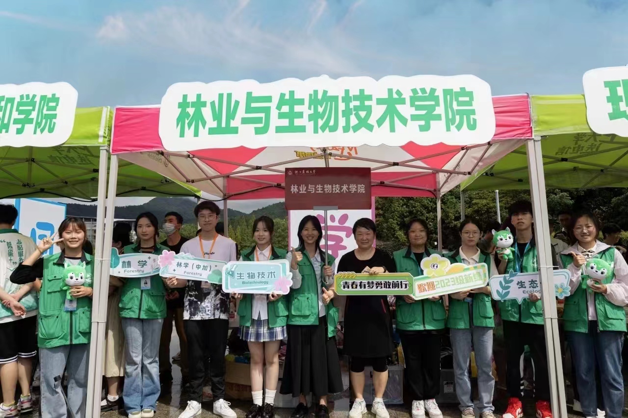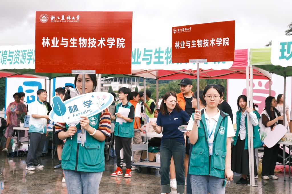 学生志愿者们早早地来到校门口迎接新生并布置展位。学院的大本营展位上不仅提供了指引牌、专业牌、迎新KT板,还为前一百名报到新生精心准备了绿植生态瓶作为惊喜礼物,除此之外展位上还精心布置了新生大礼包、果果系列周边以及山核桃、香榧等特色展品,充分展现了学院特色。