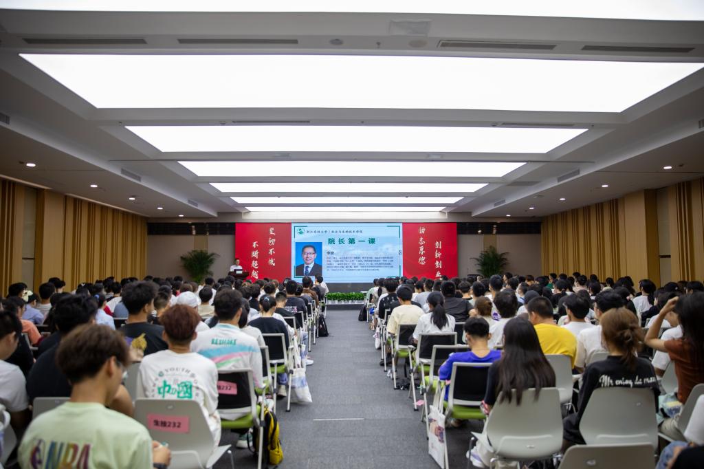 为展现bat365特色教学体系和学科建设风范,帮助新生树立长远目标,9月17日,学院2023级新生开学第一课顺利开展。学院院长李彦面向学院全体2023级本科生讲授开学第一课。