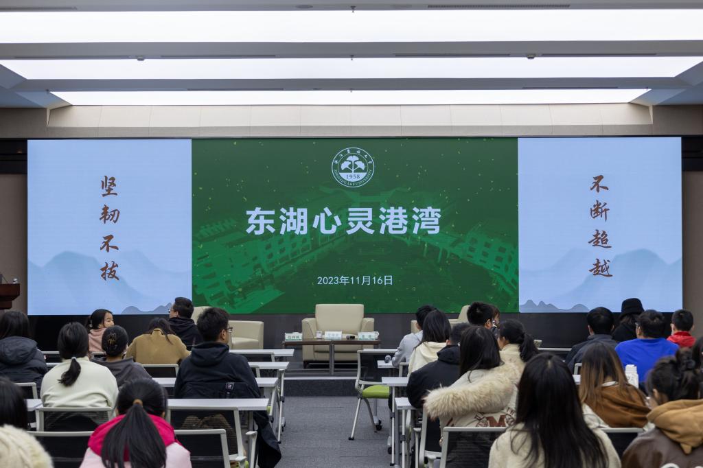 本次“东湖心灵港湾”活动由包林帆老师主持,学院心理辅导站邀请沈锦波教授和张进教授作心路历程分享,学院本硕博学子参加本次活动。
