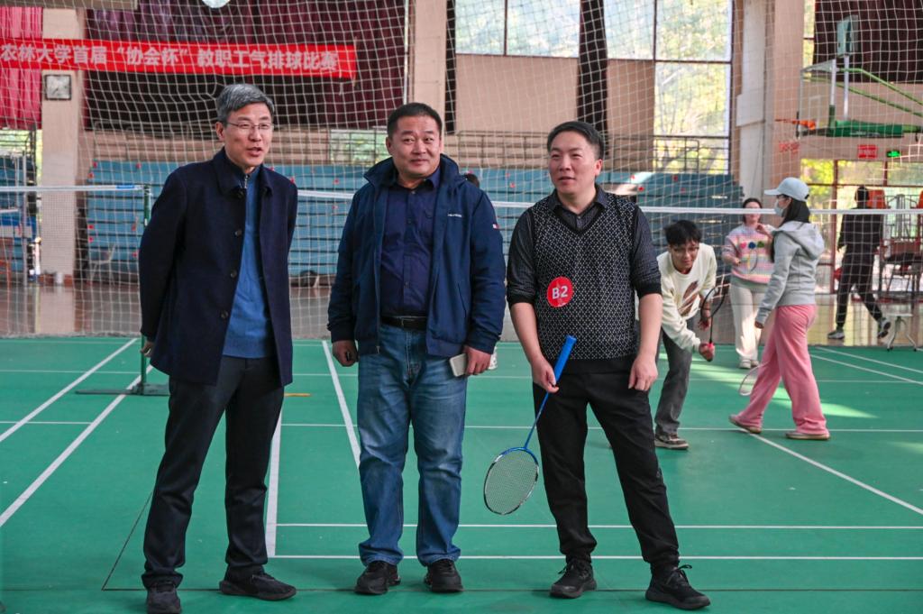 学院领导对于此次活动开展高度重视,学院党委书记郑炳松第一时间莅临现场观赛,并对师生们赛场上的激情拼搏与体育竞技精神表示肯定。学院常务副院长王正加更是亲自带队,与参赛选手们同台竞技。王正加教授在赛前亲切地与同队学生交谈,分享关于混双比赛的经验与心得,进行发球示范与教学,并参与到激烈的比赛当中去,赛场上的他挥洒汗水,发挥娴熟球技的同时,更以奋力拼搏的体育精神激励着在场的所有同学与老师。欢呼与拼搏交织,奋斗与热血同燃,比赛中教职工与同学们不断赛出绝妙的配合与精彩的瞬间,激情绽放,谁与争锋,尽显林生活力与“无体艺 不农林”的拼搏精神。